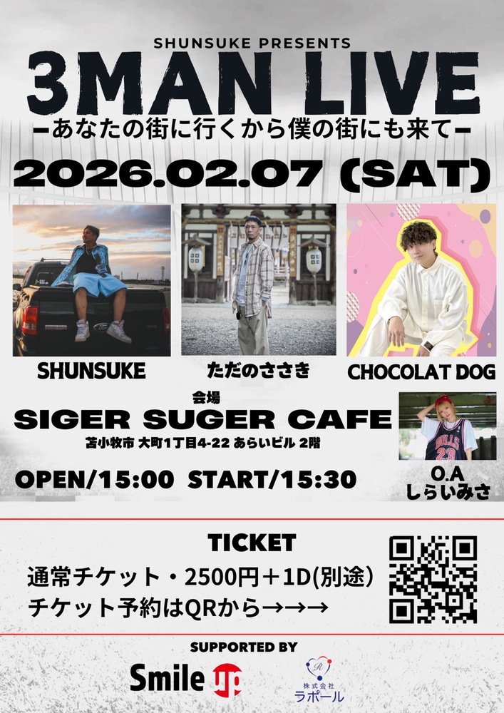 苫小牧LIVE「3MAN LIVE 〜あなたの街に行くから僕の街にも来て〜」